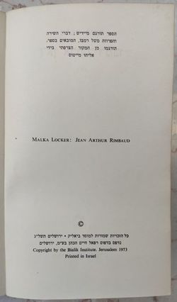 הספר תורגם מיידיש; דברי השירה והפרוזה משל רמבו המובאים בספר תורגמו מן המקור הצרפתי בידי אליהו מייטוס