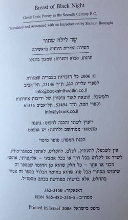 שד לילה שחור / השירה הלירית היוונית בראשיתה